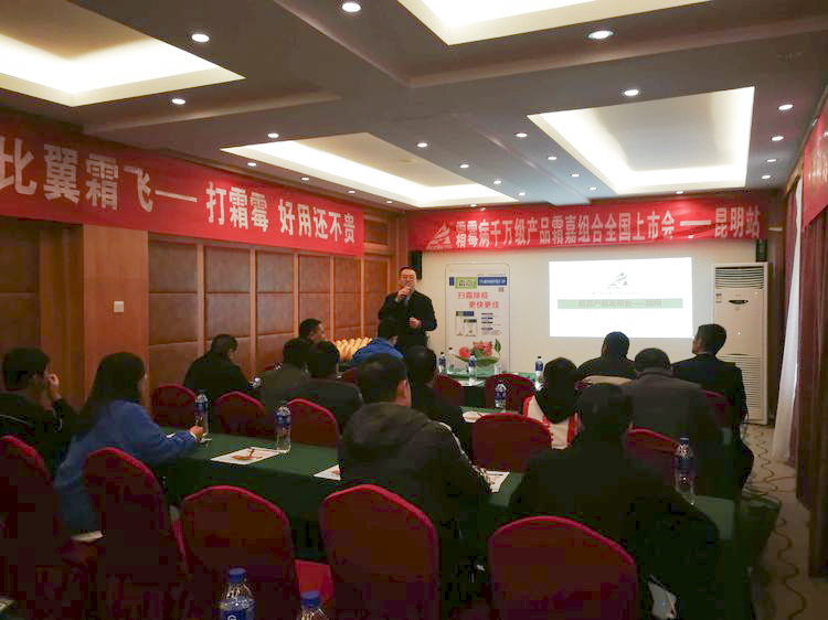 齐瑞丰农资总经理李绯首先发表讲话,他对霜嘉产品表示高度认可和期待,针对霜嘉这个产品要精选客户,定点投放,统一价格销售。李总表示:霜嘉从配方、效果上都有突出的优势,针对昆明蔬菜,花卉霜霉病有巨大的市场和操作空间。希望通过此次霜嘉上市会,将产品做大,做强。