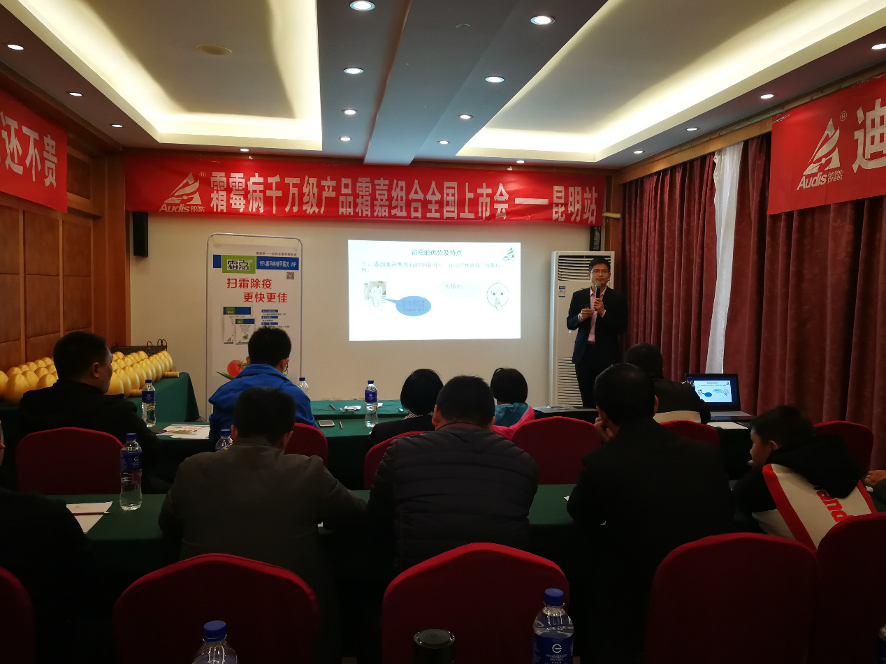1月14日,霜嘉上市会在昆明隆重召开,齐瑞丰农业科技有限公司李绯、奥迪斯西南大区经理郭鲁江及霜嘉产品经理王金欢等领导出席会议,昆明齐瑞丰农资“霜嘉”核心客户共同见证此次盛会。