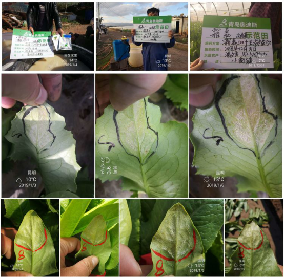 11月进入冬季,云南省气温降低,这个时候霜霉病也逐渐成为云南省蔬菜区叶菜类让农户和零售店比较疼痛的问题。11月底以来,我们在云南进行奥迪斯新品“霜嘉”示范试验,累计试验量达到50+,霜嘉的效果从未让我们失望过。从宜良到通海,再到嵩明,霜嘉一次次在对抗霜霉病中取得胜利。